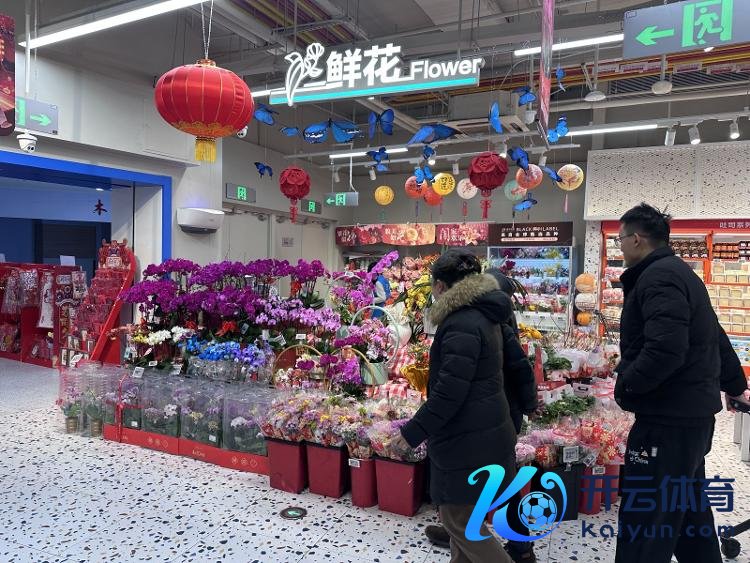 在济南盒马鲜生印象济南泉世界店的进口处,年宵花被放手在显眼位置,郁金香、玫瑰、冬青、蝴蝶兰、银柳、澳梅,还有弥漫的黄金果、金桔等等,五彩纷呈,一片喜庆。