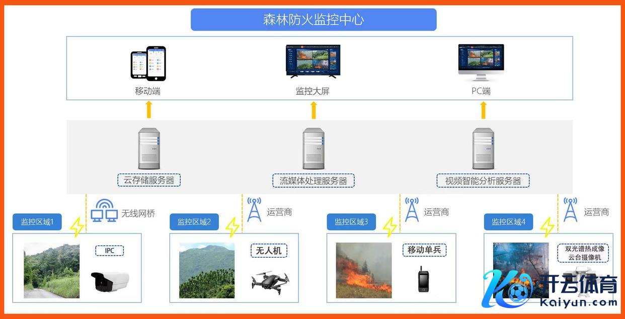 本有揣度打算以丛林防火监控系统为中枢,依托管束平台竣事“监测-预警-处置-分析”全历程闭环管束,具体架构如下: