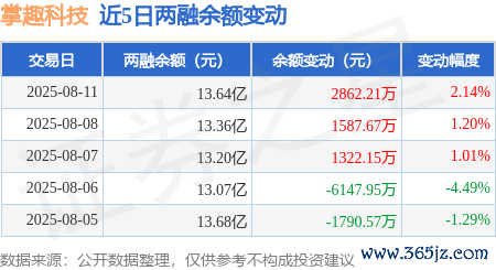本站讯息,8月11日,掌趣科技(300315)融资买入2.13亿元,融资偿还1.84亿元,融资净买入2883.1万元,融资余额13.6亿元,近3个交游日已流畅净买入累计5734.79万元。