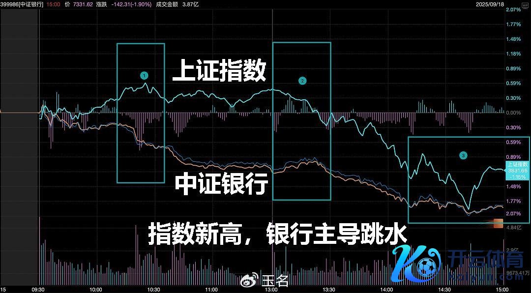 谁是指数跳水的推手呢?银行股领路脱不了联系。之前转头了,最近一个月时间里,银行股和指数是反向运行的,指数诊疗,银行股护盘;指数反弹,银行股跳水。9.18日亦然如斯,刺眼图中的几个位置,3899点新高之际,银行股运转跳水,随后指数翻绿,加快跳水之际,银行股运转托举了,尾盘更是稳住,这么的走势,不得不说控盘手法很好意思妙。