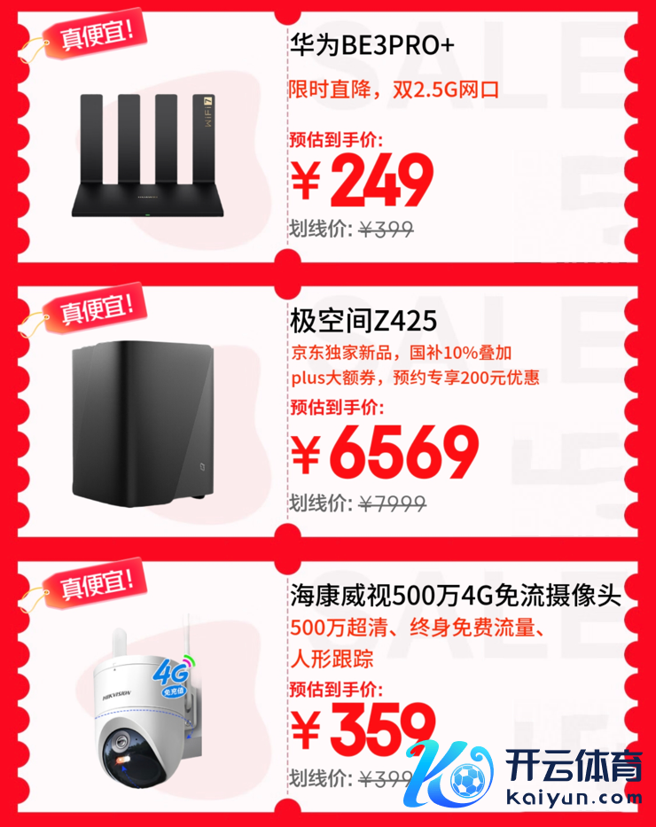 若需搭建家庭或袖珍团队的智能核心,极空间Z425出奇云旗舰版值得热心,行动14核14线程四盘位NAS,搭载万兆网口与专属UPS,京东下单可重复国补10%优惠与PLUS会员大额券,预约专享200元优惠后笔直6569元,为多设立文献存储与AI互助提供可靠维持。华为路由BE3 Pro+则以WiFi7+双2.5G网口与智能天线野心,限时直降后249元即可升级家庭会聚。海康威视Q3P5M 4G录像头凭借终生免流量、500万像素与360度全景监控功能,成为安全驻扎的优选,京东11.11优惠笔直价359元。