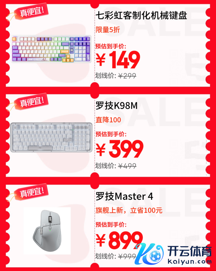 关于专注案头使命的用户而言,键盘、鼠标等基础外设升级正那时。若偏疼个性化与手感,七彩虹青羽98三模机械键盘平常价299元,限量5折后仅需149元,霜华配色搭配星霜凝轴,兼顾办公与轻度游戏的舒心输入;罗技ALTO KEYS K98M琥珀系列无线键盘直降百元,优惠笔直价399元,大理石轴与热插拔野心适配多元需求。罗技民众系列MX Master 4高性能无线蓝牙鼠标旗舰上新,立省100元后笔直899元,静音野心与无线继承器竖立,为高频办公提供更通顺的操控体验。