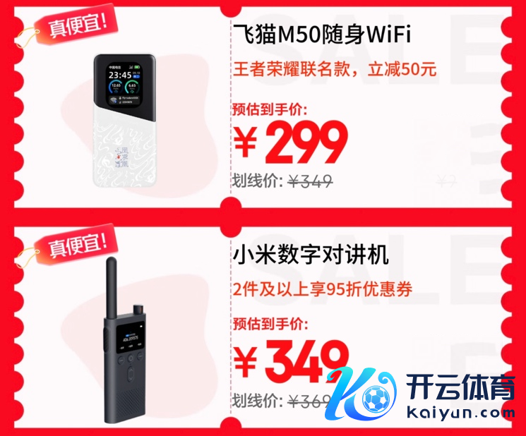 移动办公与团队互助场景下,设立聘用更需兼顾松弛与沉稳。飞猫M50王者荣耀联名款5G随身WiFi行动2025旗舰新款,立减50元后249元笔直,维持三网免插卡与通用流量,出门差旅或临时办公的会聚需求随意惩办。小米数字对讲机则以轻狂机身与大功率远距通话才气,成为团队户外功课或跨区域交流的实用器具,2件及以上还能享95折优惠。